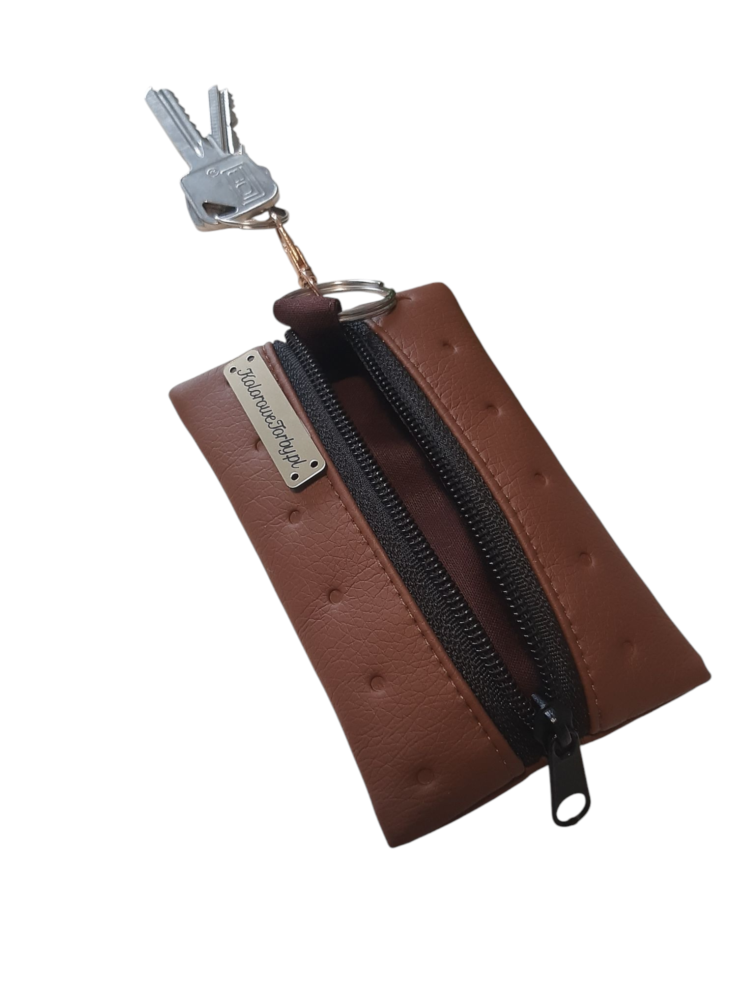 BRĄZ01 Etui Na Klucze Ekoskóra To elegancka i praktyczna opcja do przechowywania kluczy domowych lub samochodowych w bezpieczny i uporządkowany sposób. Dzięki materiałowi przyjaznemu dla środowiska, etui stanowi doskonałą alternatywę dla skórzanych akcesoriów, zachowując jednocześnie elegancki wygląd i wyjątkową funkcjonalność. Wnętrze wykończone jest 100% bawełną, dobraną kolorystycznie.