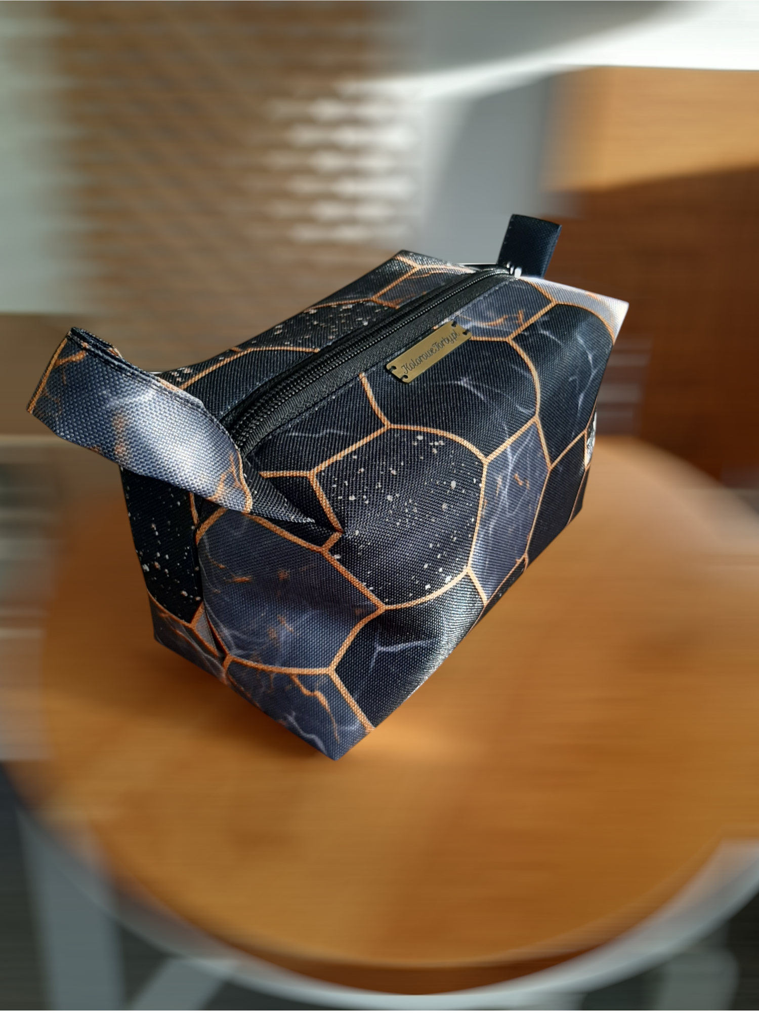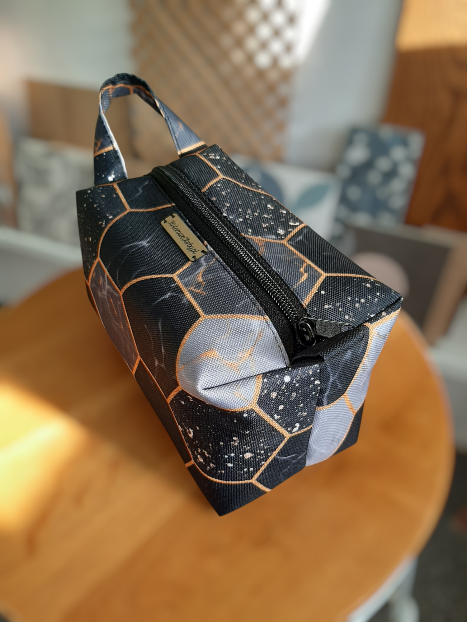 Niewielkich rozmiarów kosmetyczka typu BOX, z zapięciem na zamek błyskawiczny. Mała, ale bardzo pojemna. Z tkanin wodoodpornych.