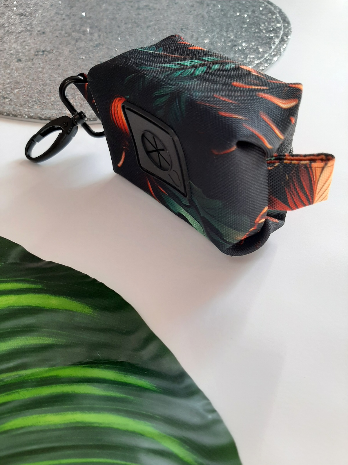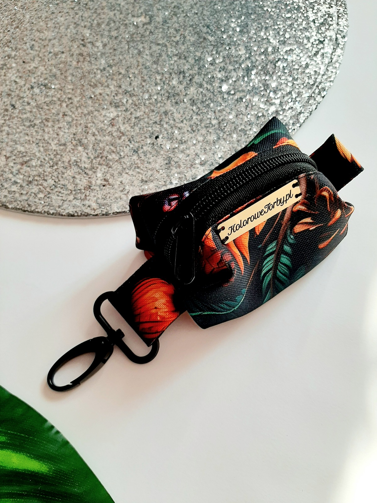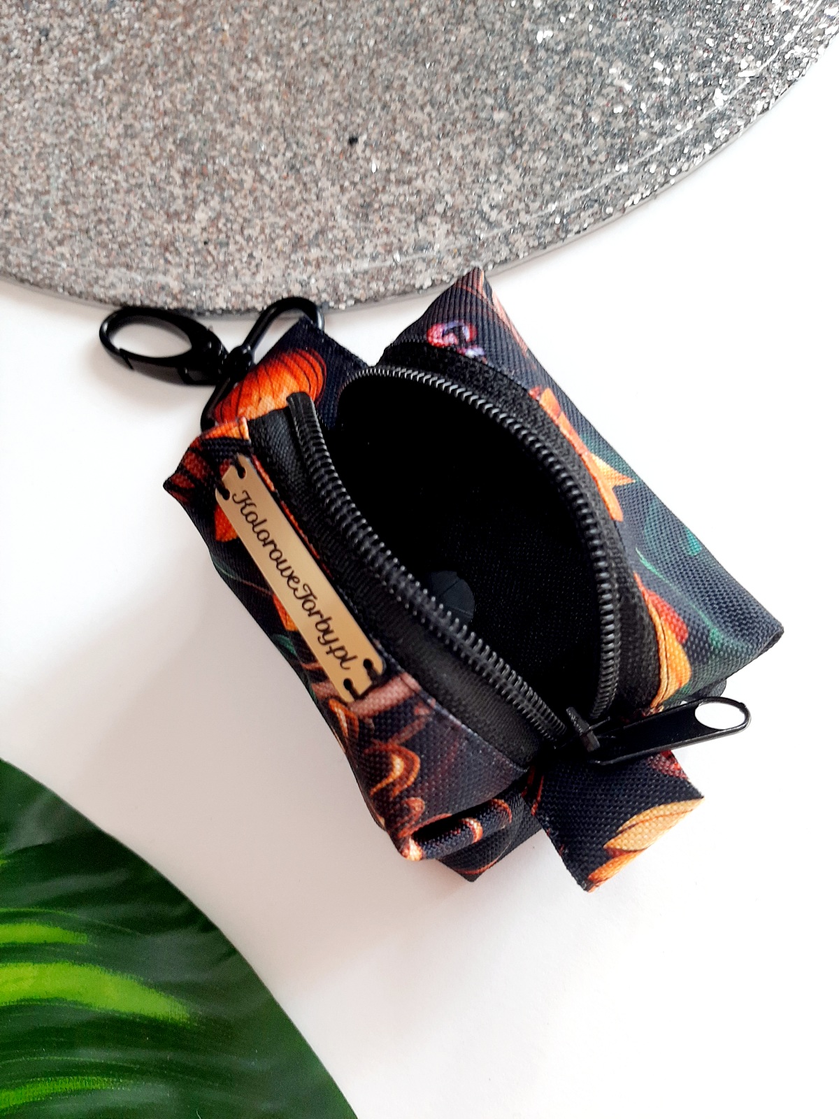 DARY JESIENI Etui na kupoworki. Niewielkich rozmiarów etui na woreczki na psie odchody o bardzo ciekawym fasonie. Wykonany z wytrzymałych, wodoodpornych tkanin, dzięki czemu nie straszna mu żadna zła pogoda. Wnętrze jest w kolorze czarnym (wykonane również z tkaniny wodoodpornej). Całość zapinana się na zamek błyskawiczny.