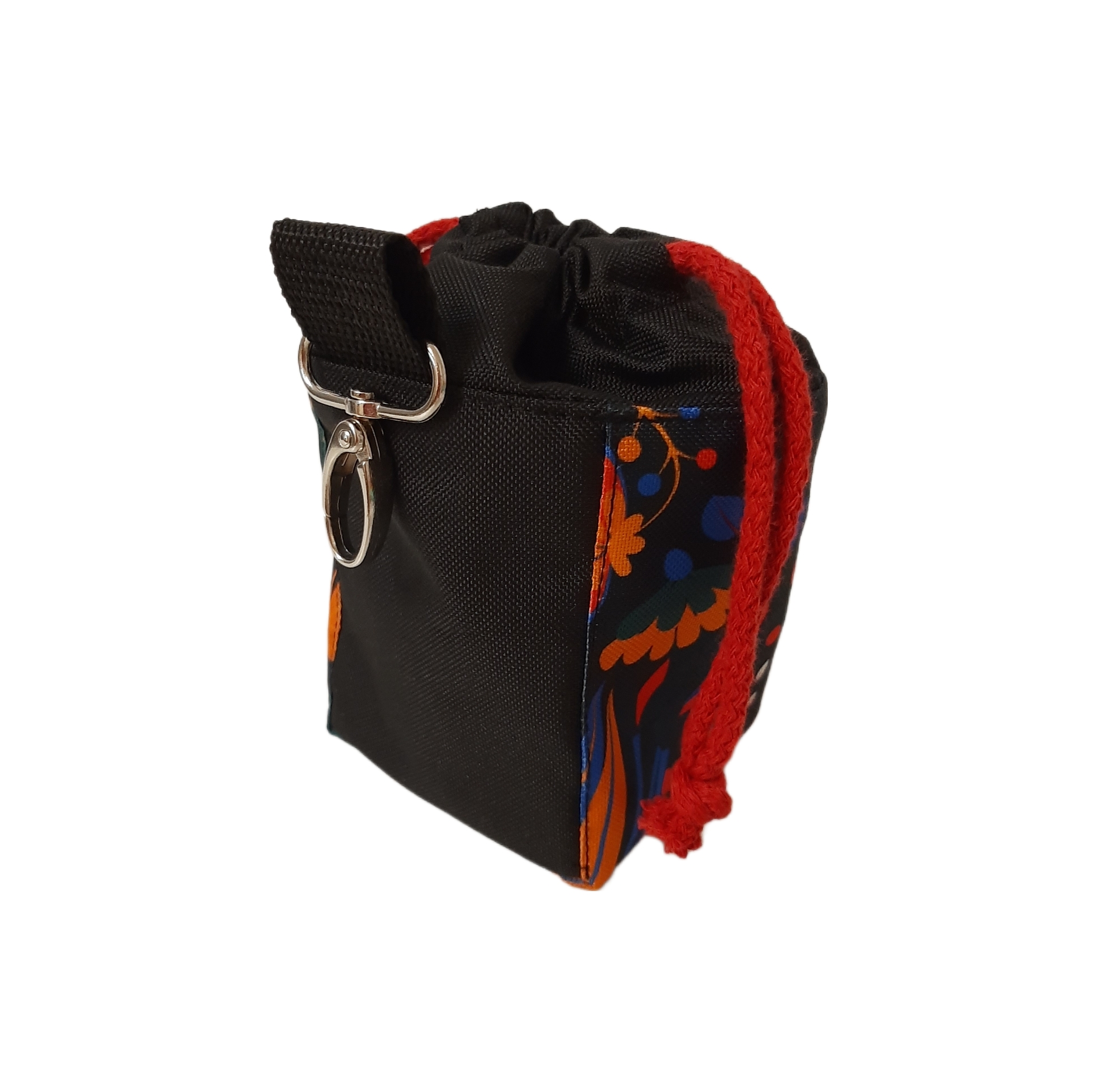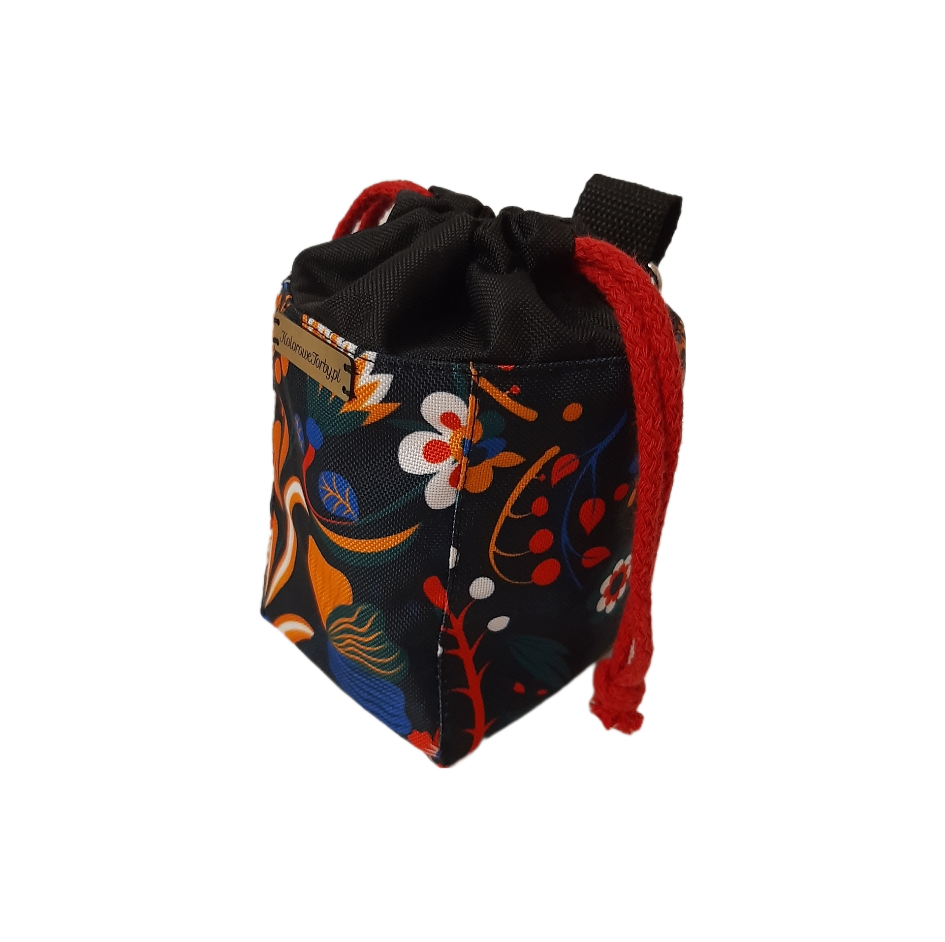 FOLK Saszetka na smaczki. Ta saszetka to idealne rozwiązanie na szkolenia, treningi, a także spacery – nawet te bardzo długie. Jest bardzo pojemne – pomieści sporo przysmaków. Dwie warstwy WODOODPORNYCH tkanin zapewnią ochronę przed zmoknięciem, podczas nieprzewidzianych, krótkotrwałych opadów. A praktyczne i szybkie zapięcie na troczki, zabezpieczy przysmaki przed wypadnięciem. Wnętrze jest w kolorze czarnym.