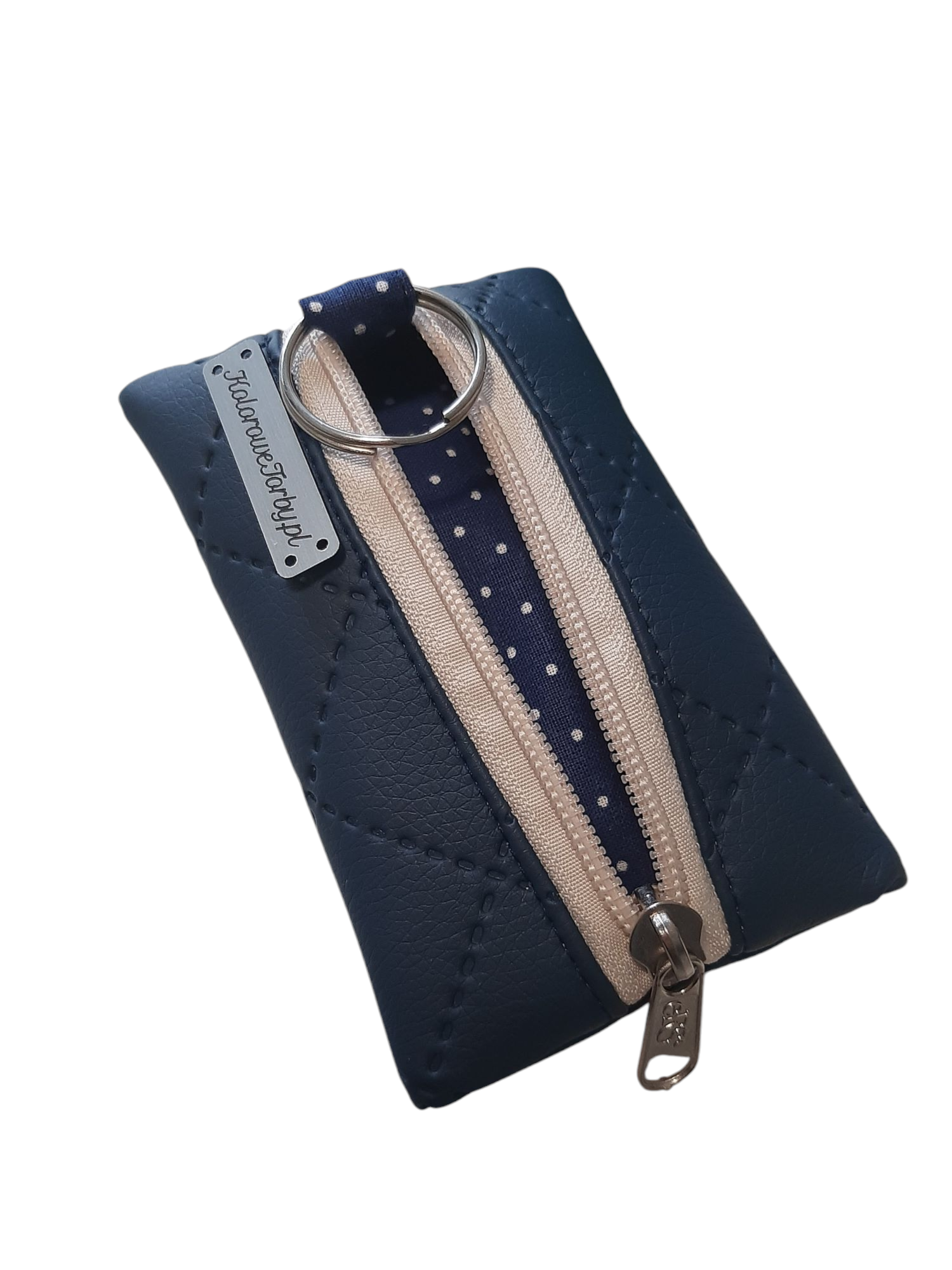GRANATOWE Etui Na Klucze Ekoskóra. To elegancka i praktyczna opcja do przechowywania kluczy domowych lub samochodowych w bezpieczny i uporządkowany sposób. Dzięki materiałowi przyjaznemu dla środowiska, etui stanowi doskonałą alternatywę dla skórzanych akcesoriów, zachowując jednocześnie elegancki wygląd i wyjątkową funkcjonalność. Wnętrze wykończone jest 100% bawełną, dobraną kolorystycznie.