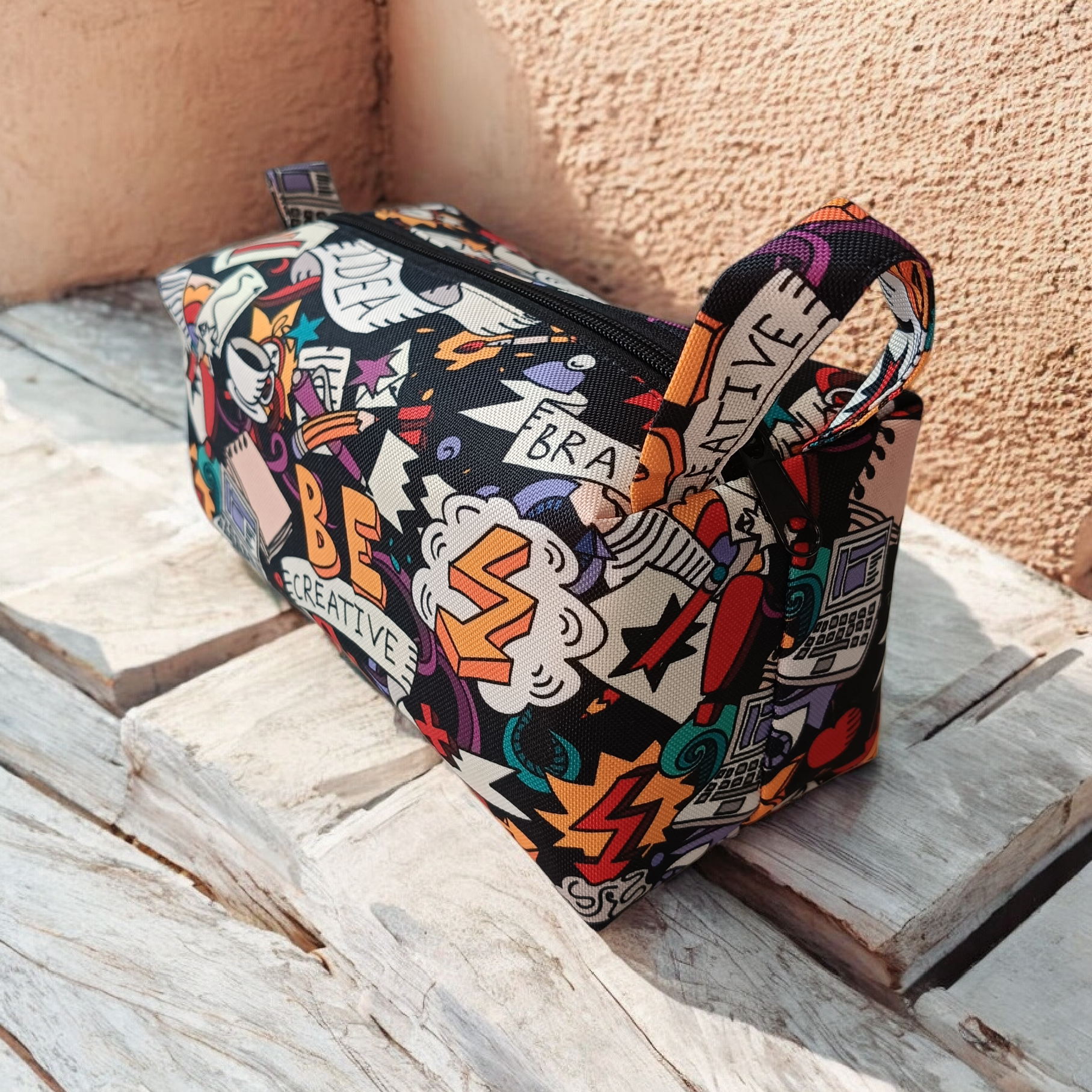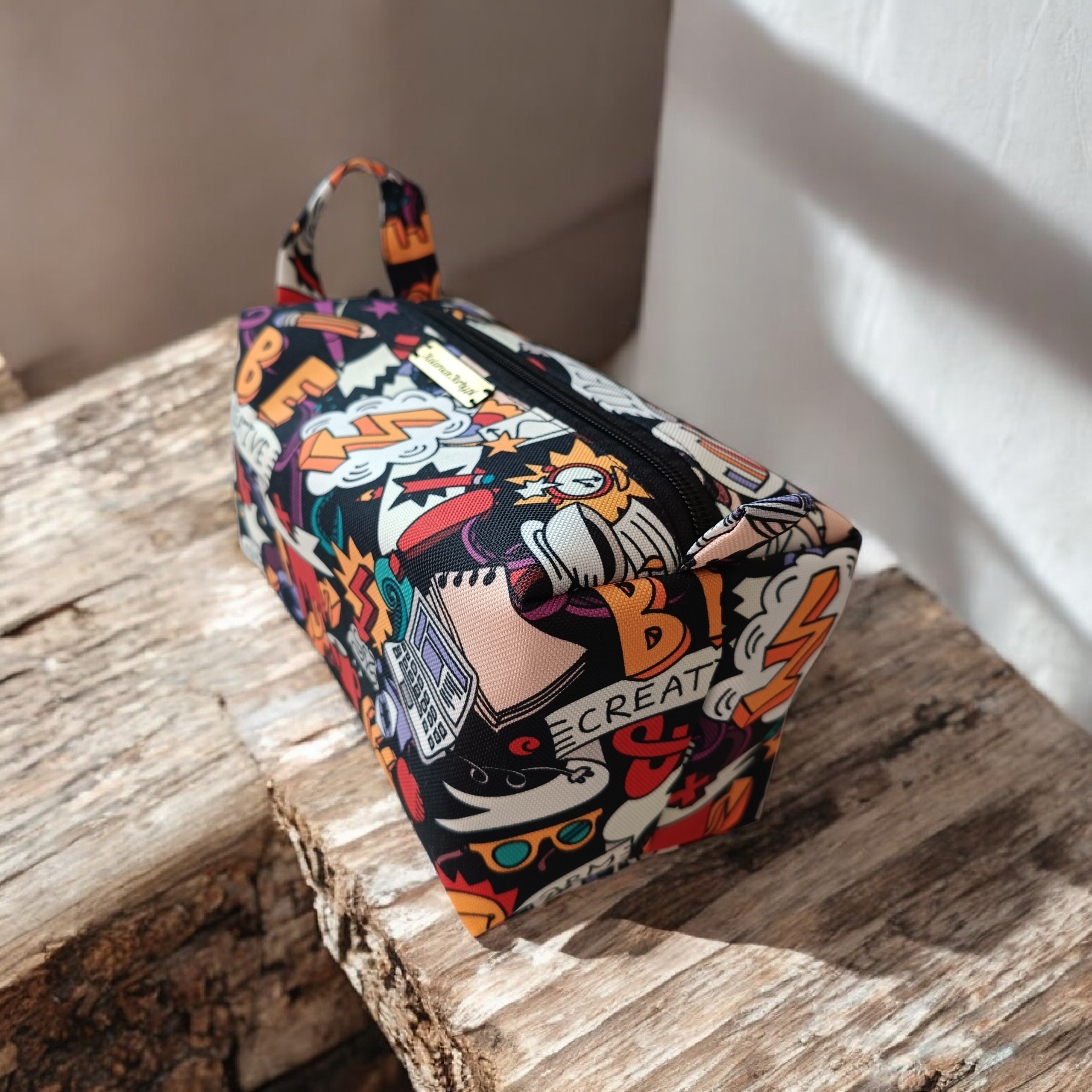 Niewielkich rozmiarów kosmetyczka typu BOX, z zapięciem na zamek błyskawiczny. Mała, ale bardzo pojemna. Z tkanin wodoodpornych.