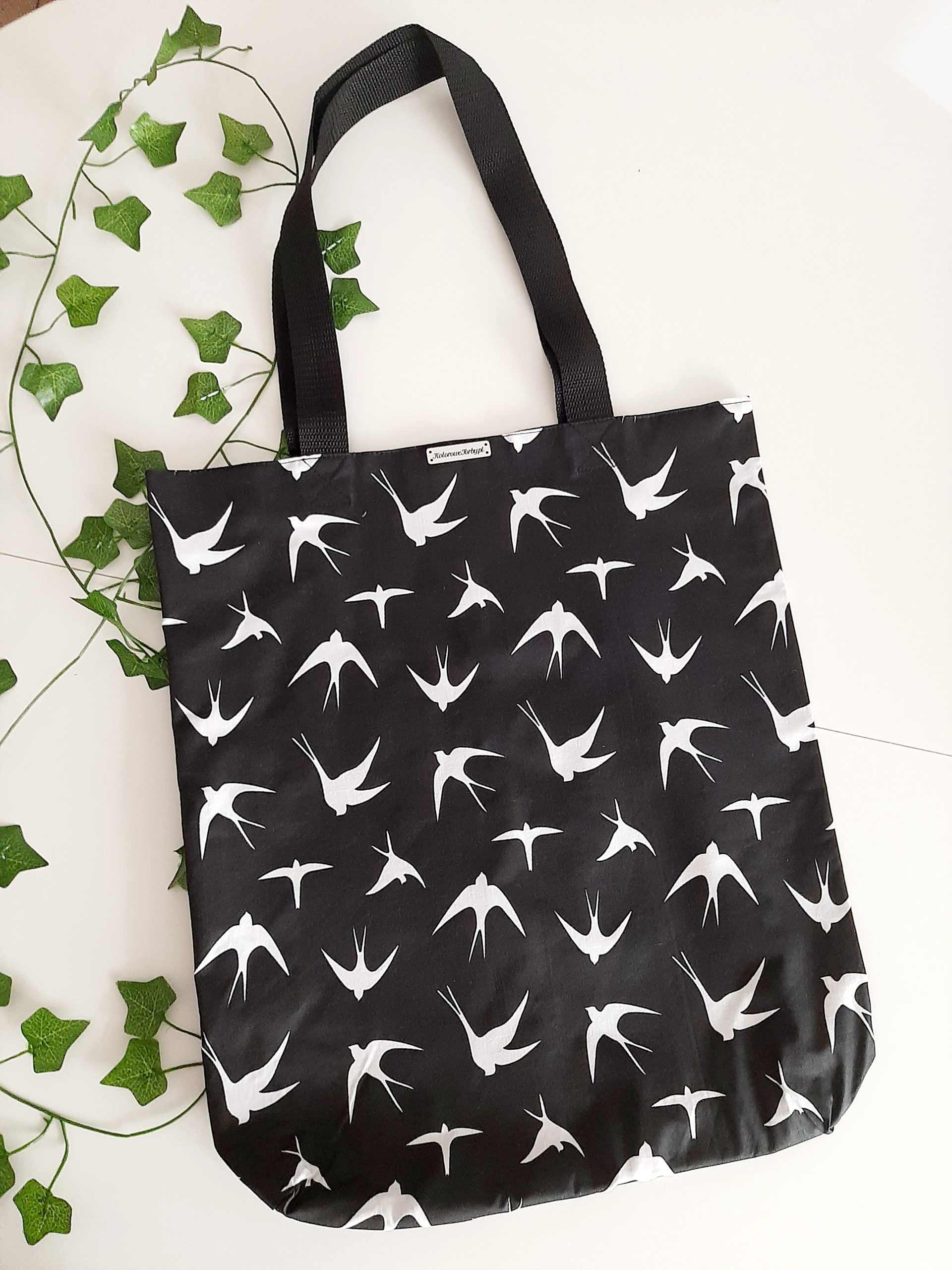 JASKÓŁKI Shopper bawełniany.  Torba bawełniana z podszewką, która idealnie nadaje się na zakupy i nie tylko.