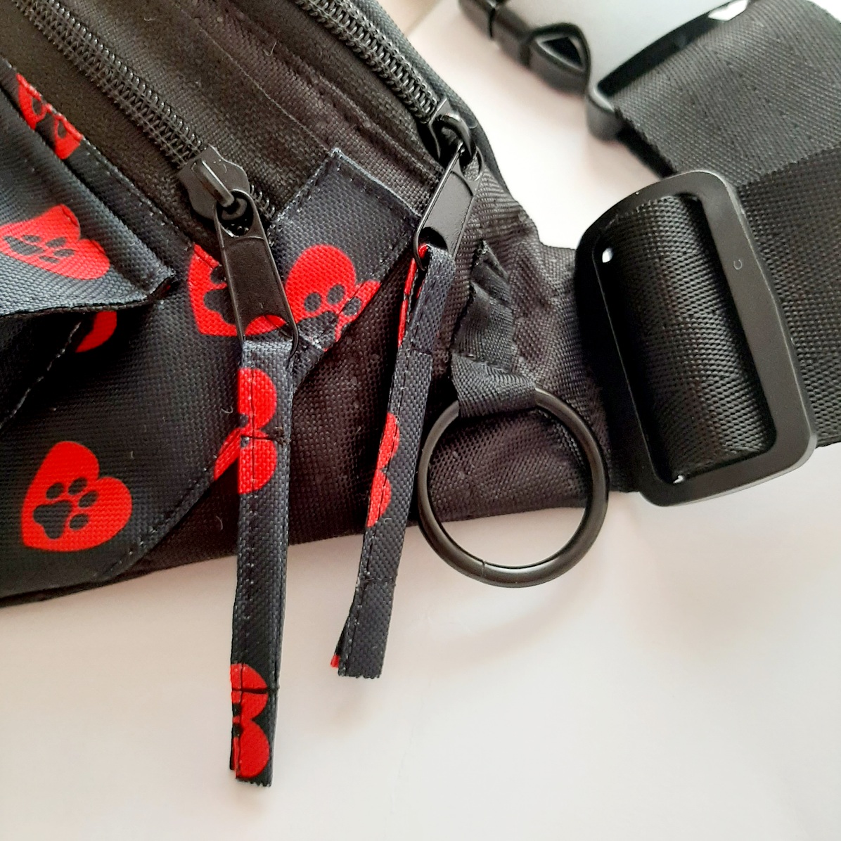 Oprócz głównej komory i kieszeni na zamek, niezaprzeczalnym atutem są dwie niezależne kieszenie: na przysmaki i worki. Obie zapinane na rzep. Kolejnym fajnym gadżetem jest kółko, do którego można przypiąć smycz, gdy pies biega luzem.