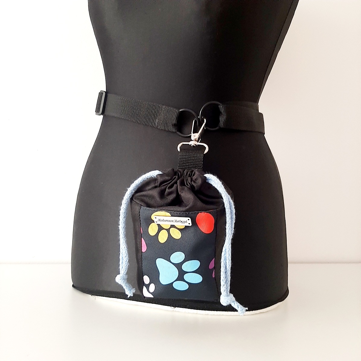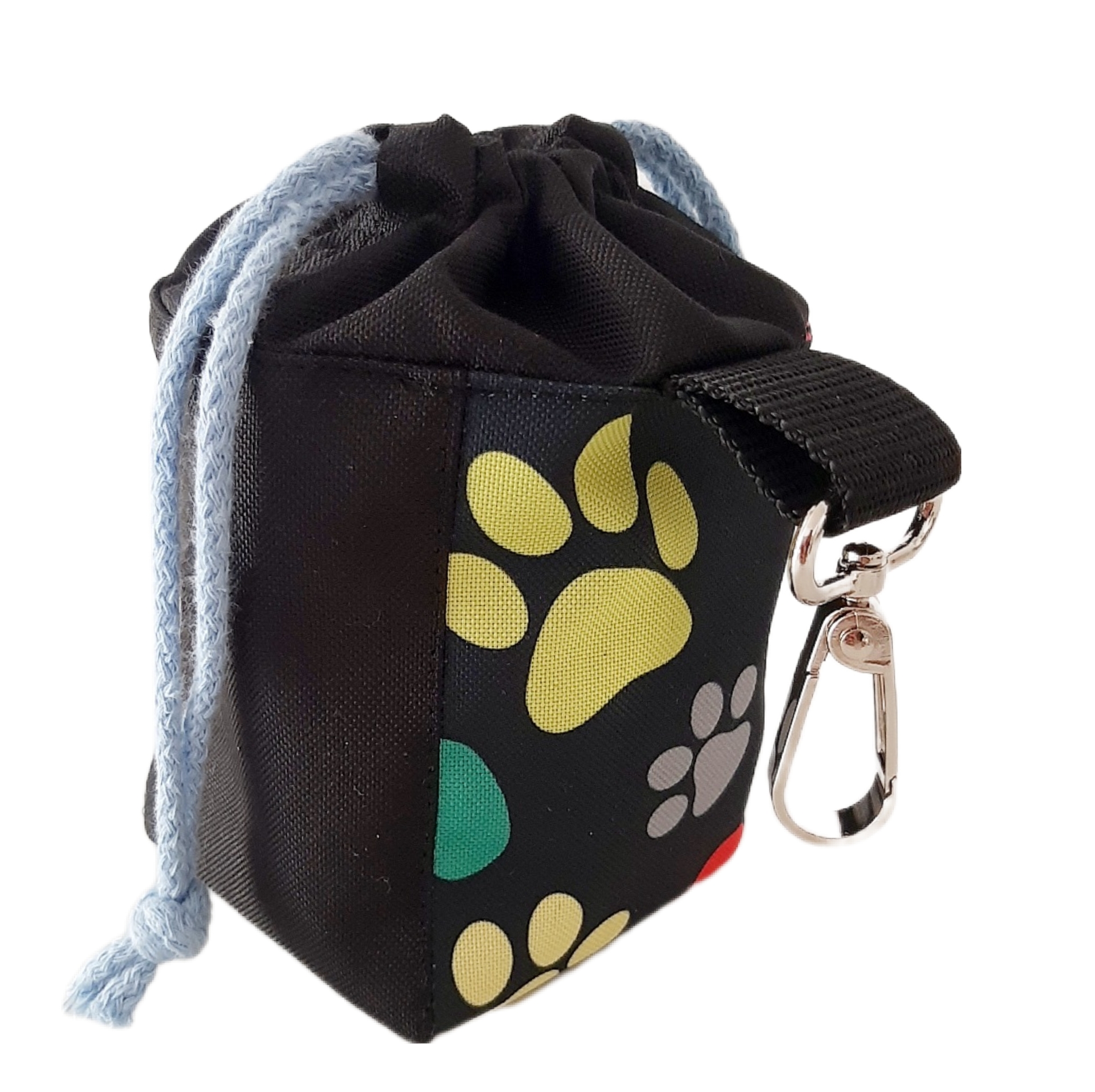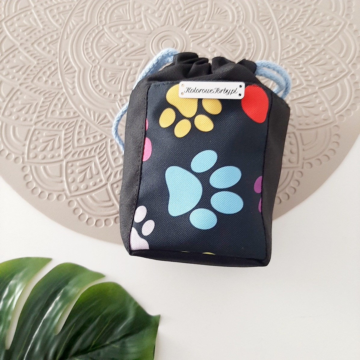 ŁAPKI02 Saszetka na smaczki. Ta torebka to idealne rozwiązanie na szkolenia i spacery – nawet te bardzo długie. Jest bardzo pojemne – pomieści sporo przysmaków. Dwie warstwy WODOODPORNYCH tkanin zapewnią ochronę przed zmoknięciem.