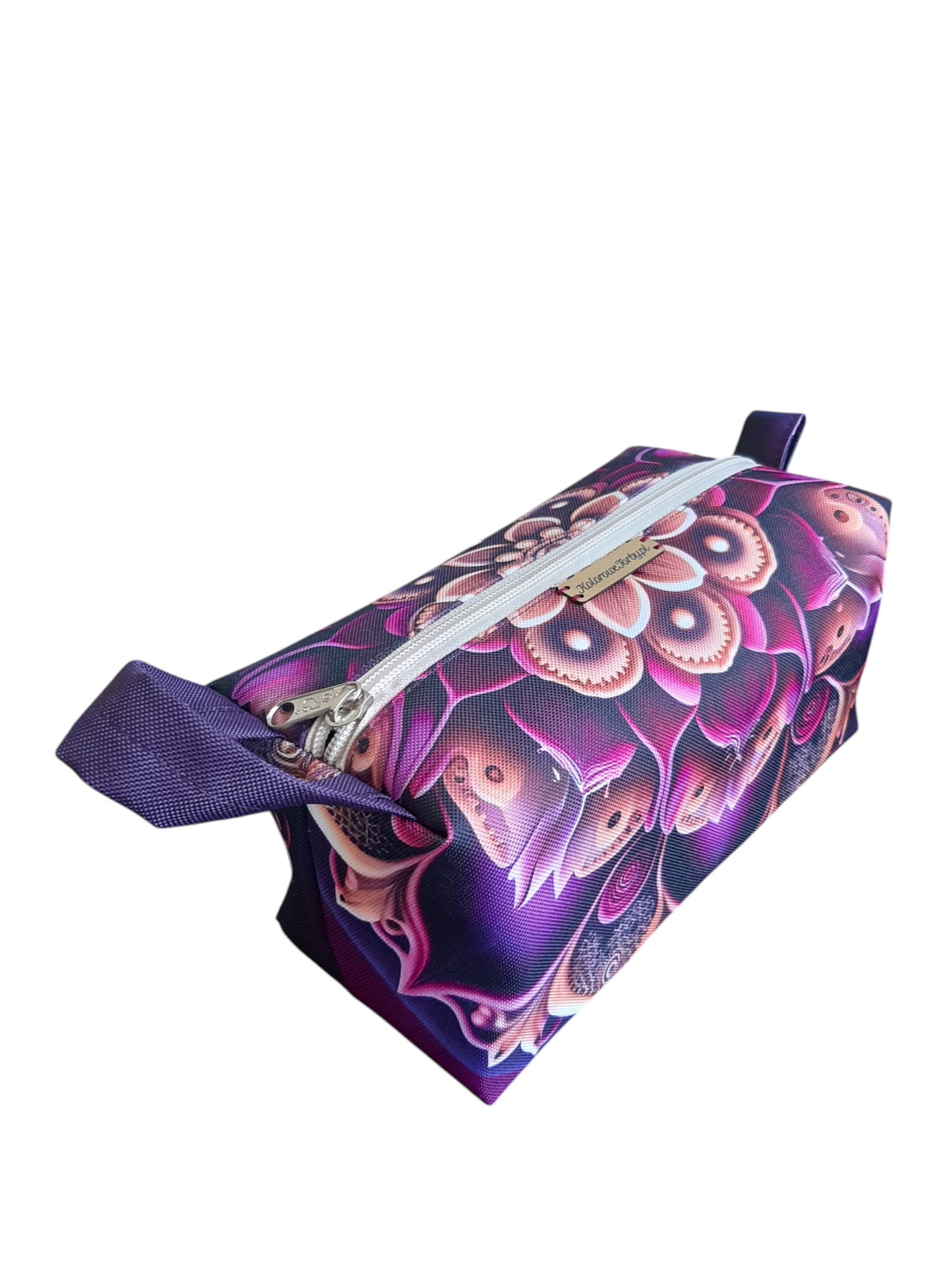 Niewielkich rozmiarów kosmetyczka typu BOX, z zapięciem na zamek błyskawiczny. Mała, ale bardzo pojemna. Z tkanin wodoodpornych.