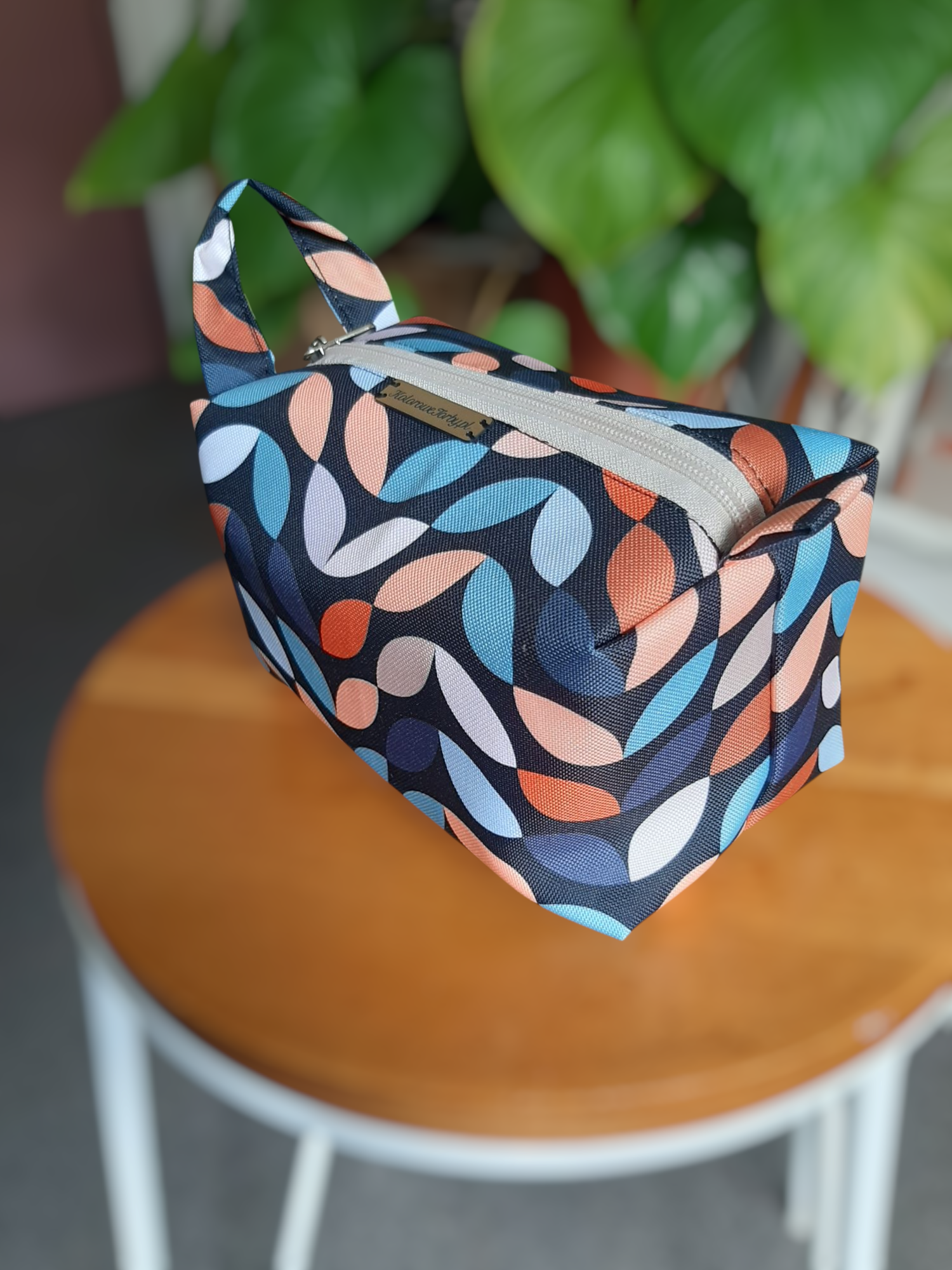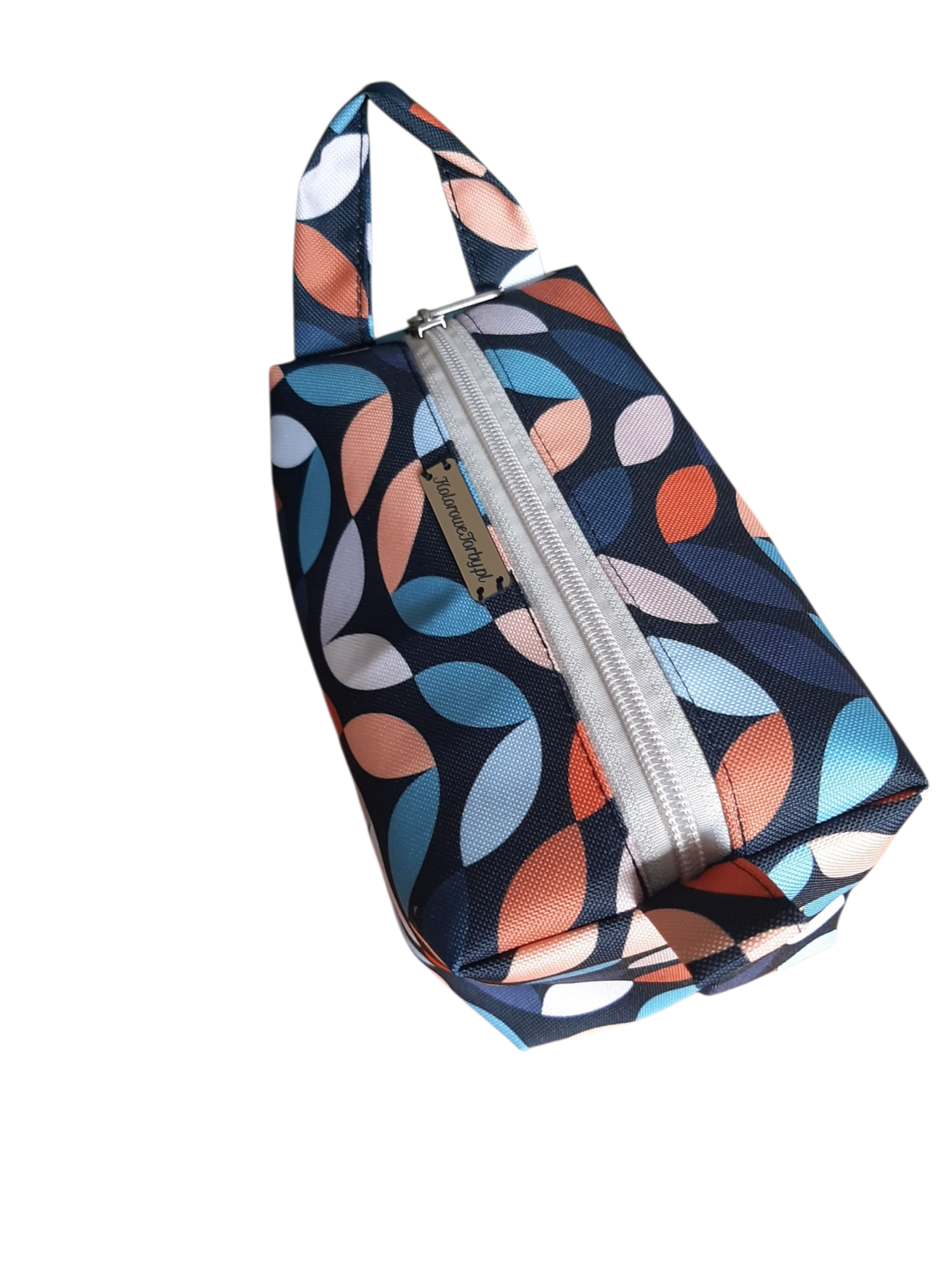 Niewielkich rozmiarów kosmetyczka typu BOX, z zapięciem na zamek błyskawiczny. Mała, ale bardzo pojemna. Z tkanin wodoodpornych.