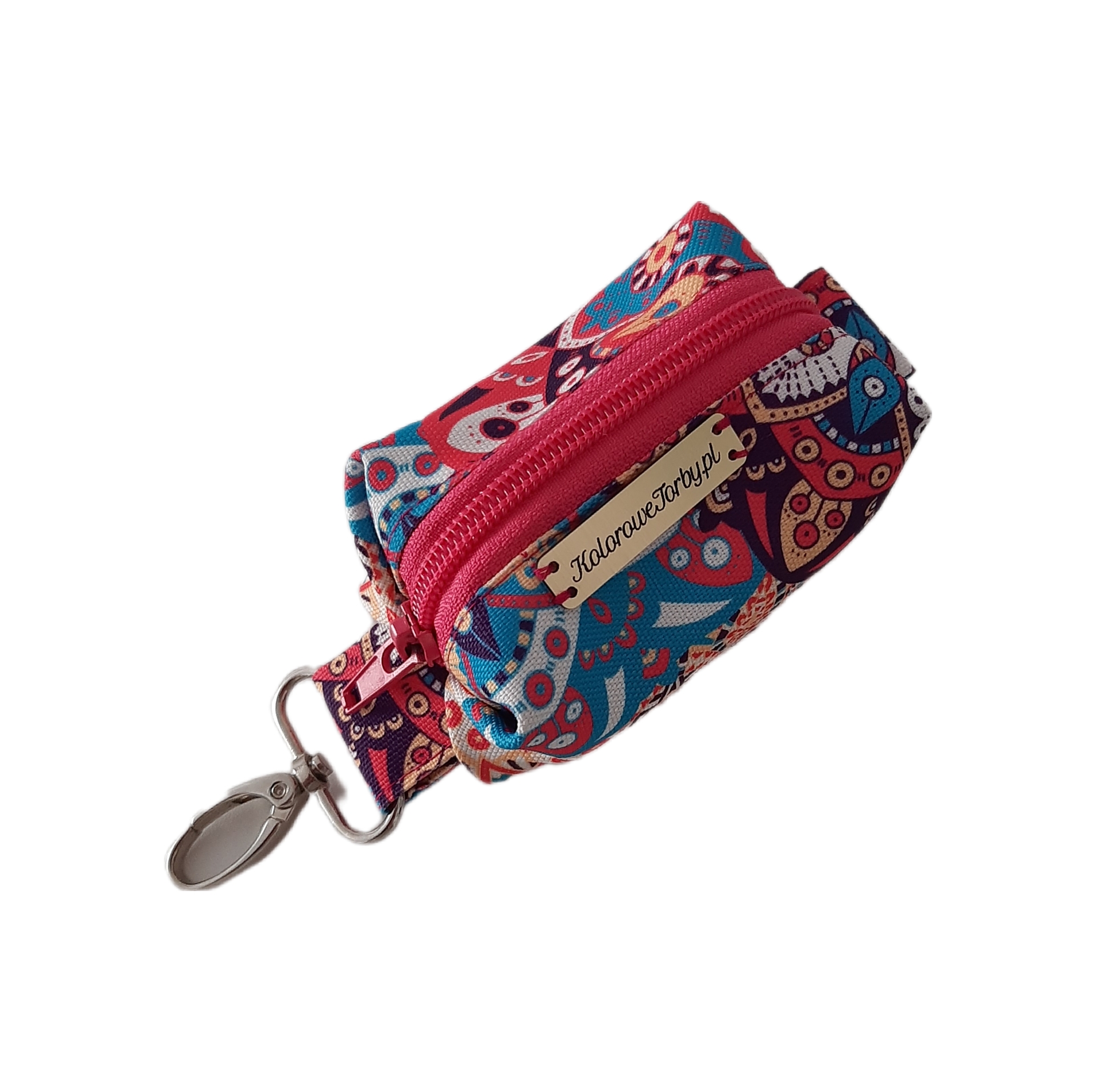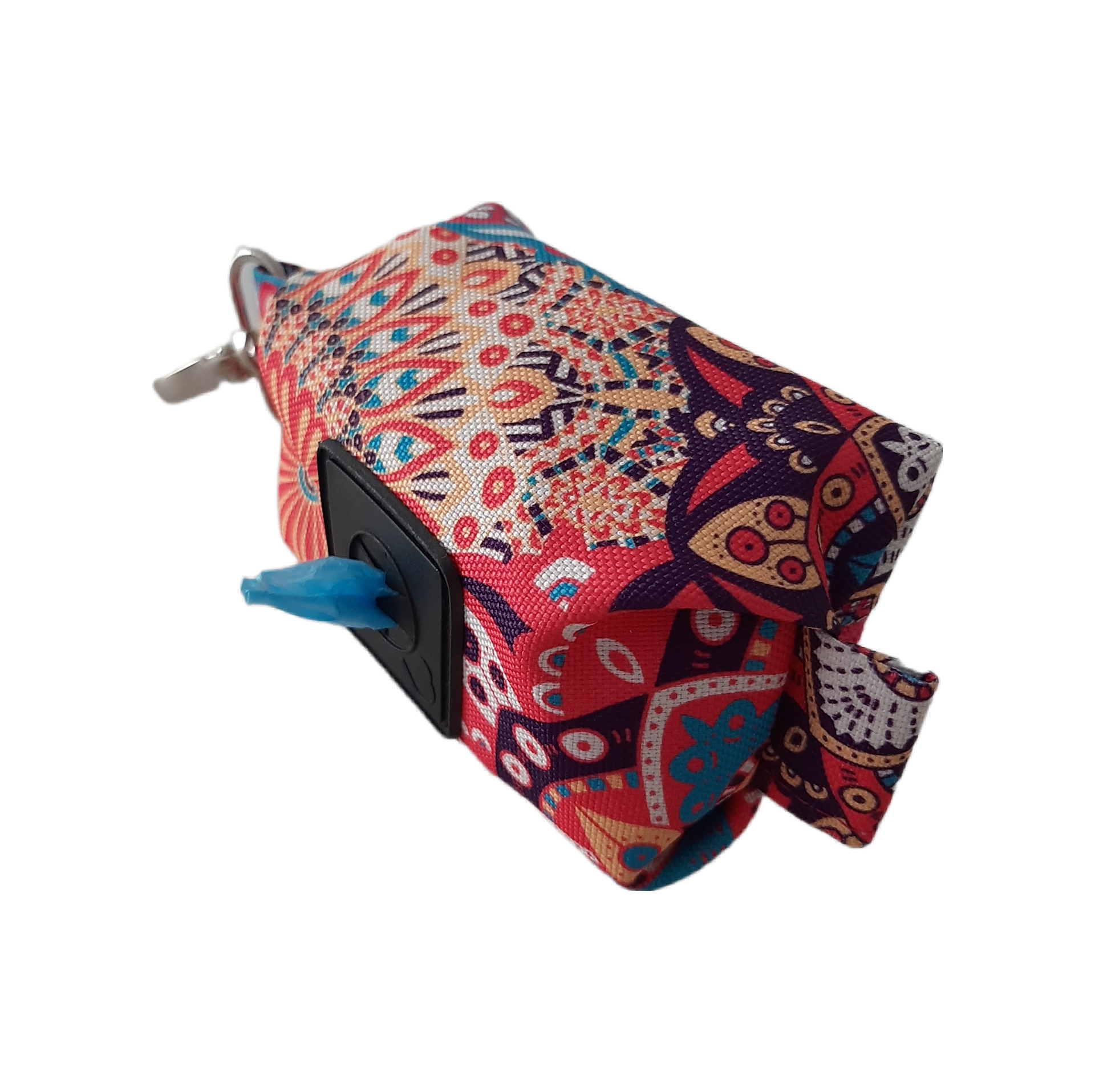 MANDALA Etui na kupoworki. Niewielkich rozmiarów etui na woreczki na psie odchody o ciekawym fasonie. Wykonany z wytrzymałych, wodoodpornych tkanin. Środek w kolorze czarnym (również wodoodporny). Całość zapinana na zamek błyskawiczny.
