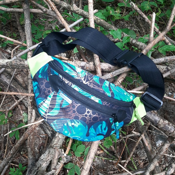 Wnętrze w kolorze czarnym ( również wodoodporne). Ten model saszetki posiada szeroki pasek i dwa regulatory, co powoduje idealne dopasowanie do swoich potrzeb. Można ją nosić na biodrach lub przełożyć przez ramię na skos.