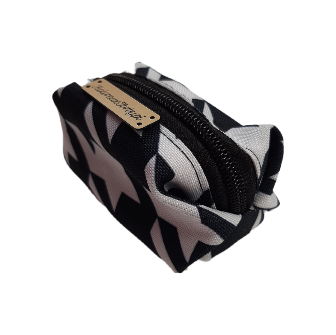 PEPITA Etui na kupoworki. Niewielkich rozmiarów etui na woreczki na psie odchody o ciekawym fasonie. Wykonany z wytrzymałych, wodoodpornych tkanin. Środek w kolorze czarnym (również wodoodporny). Całość zapinana na zamek błyskawiczny.