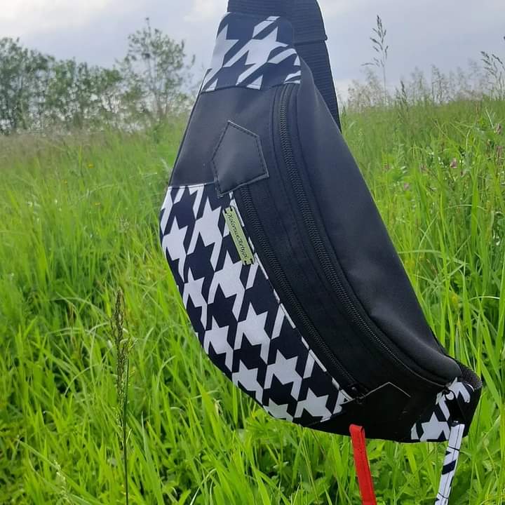 Wnętrze w kolorze czarnym ( również wodoodporne). Ten model saszetki posiada szeroki pasek i dwa regulatory, co powoduje idealne dopasowanie do swoich potrzeb. Można ją nosić na biodrach lub przełożyć przez ramię na skos.
