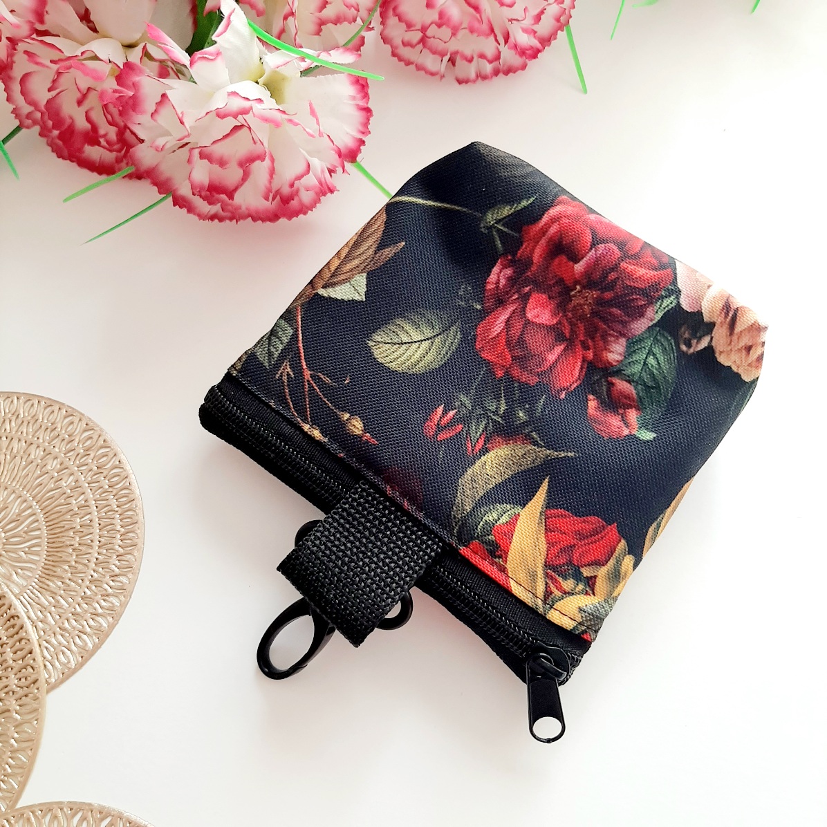 RÓŻE01 Saszetka 2w1. Praktyczna i funkcjonalna torebka treningowa niezbędna podczas treningów lub spacerów – nawet tych bardzo długich. Posiada dwie niezależne kieszenie: jedną na smaczki dla psa, a drugą na worki na odchody ze specjalnym otworkiem. Obie z wygodnym zapięciem na zamek błyskawiczny.