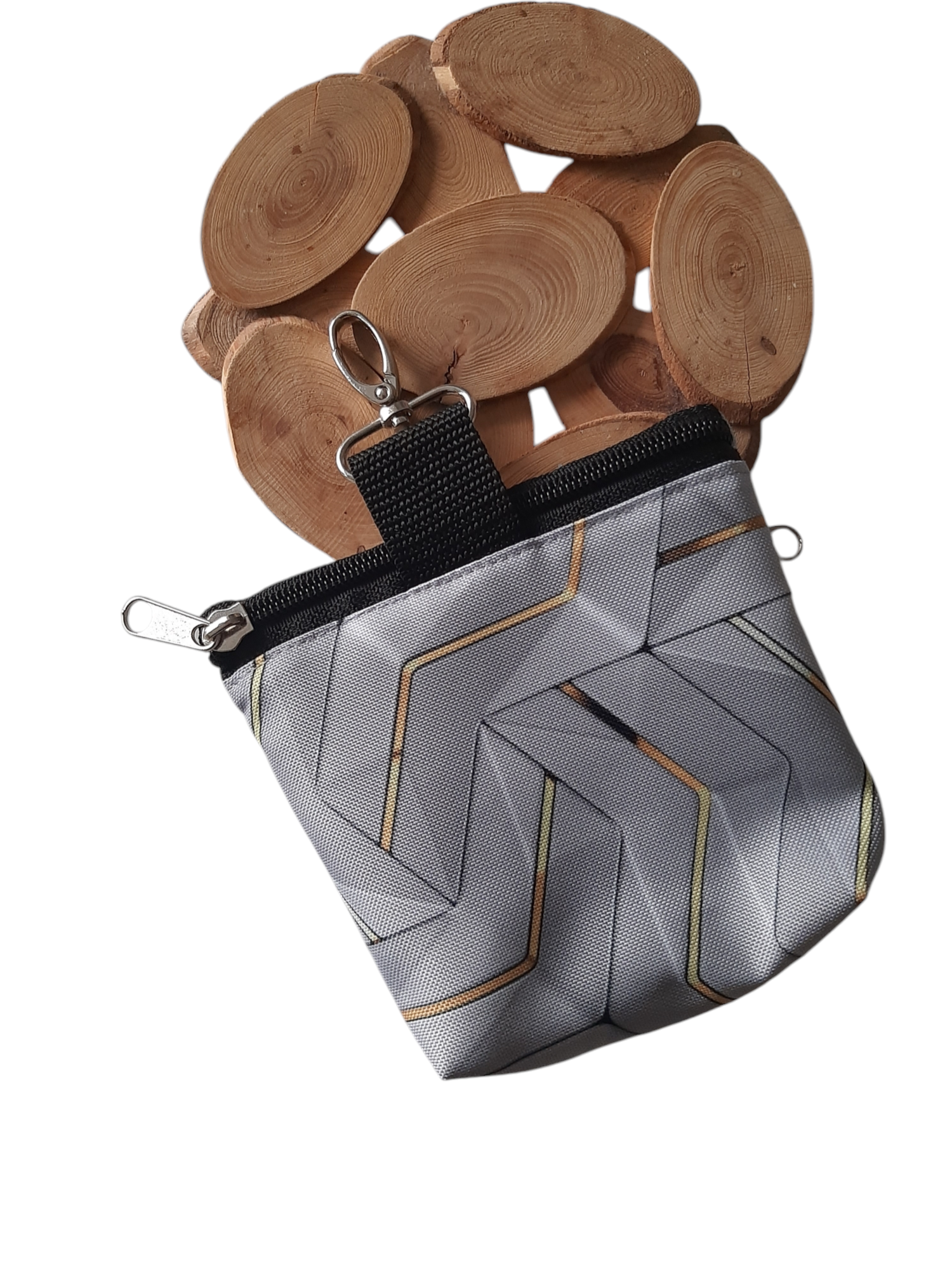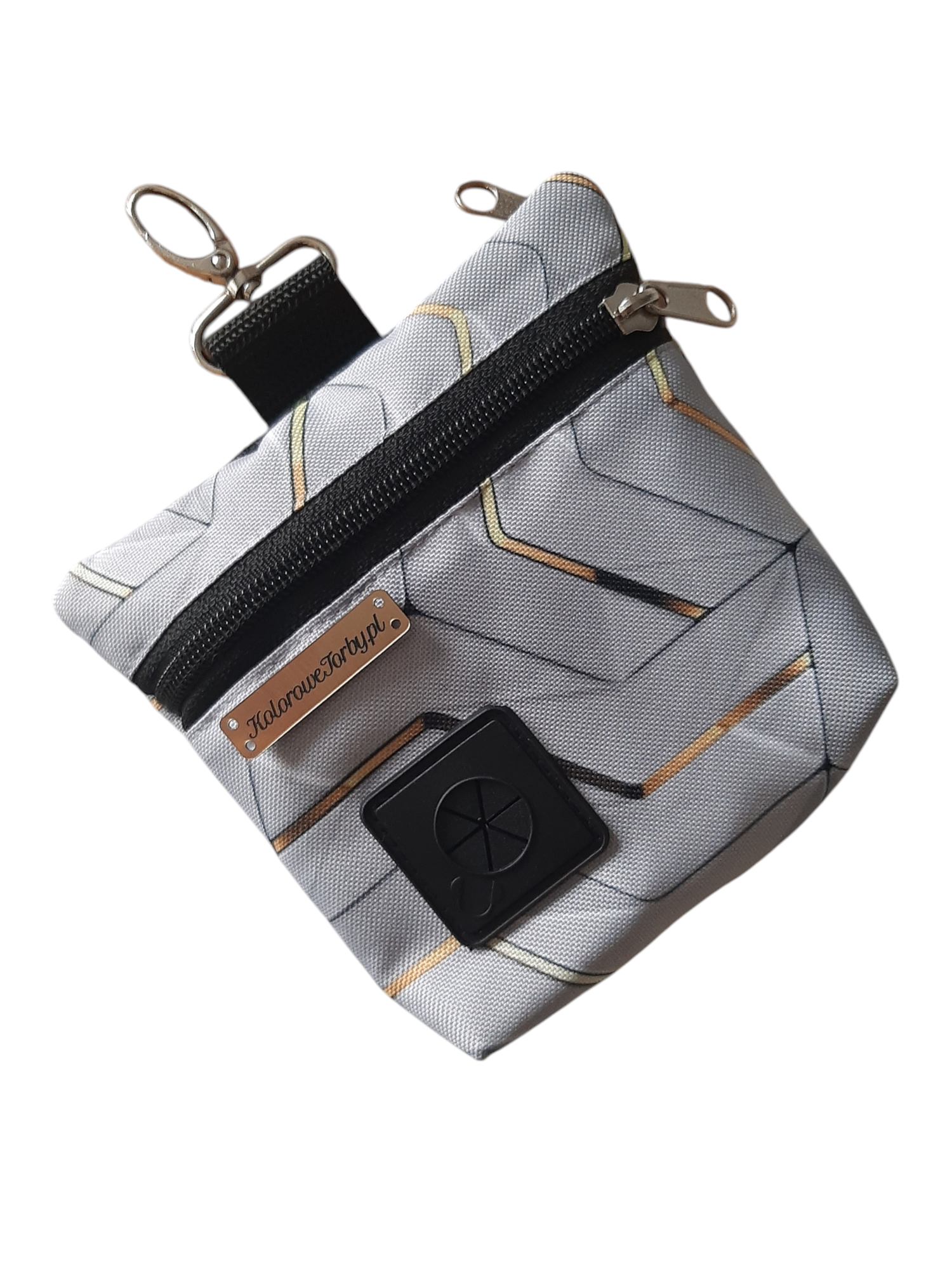 SZARE PANELE Saszetka 2w1. Praktyczna i funkcjonalna torebka treningowa niezbędna podczas treningów lub spacerów – nawet tych bardzo długich. Posiada dwie niezależne kieszenie: jedną na smaczki dla psa, a drugą na worki na odchody ze specjalnym otworkiem. Obie z wygodnym zapięciem na zamek błyskawiczny.