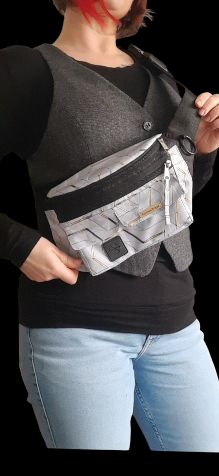 SZARE PANELE Nerka Spacerowa to funkcjonalny i bardzo praktyczny model dedykowany wszystkim właścicielom psów. Idealne rozwiązanie na szkolenia czy spacery – nawet te bardzo długie. Wykonana z wytrzymałych i wodoodpornych tkanin, odpornych na przetarcia oraz rozciąganie, dzięki czemu posłuży bardzo długo. Wnętrze w kolorze czarnym ( również wodoodporne). Saszetka posiada szeroki pasek i dwa regulatory, co powoduje idealne dopasowanie do swoich potrzeb. Można ją nosić na biodrach lub przełożyć przez ramię na skos.