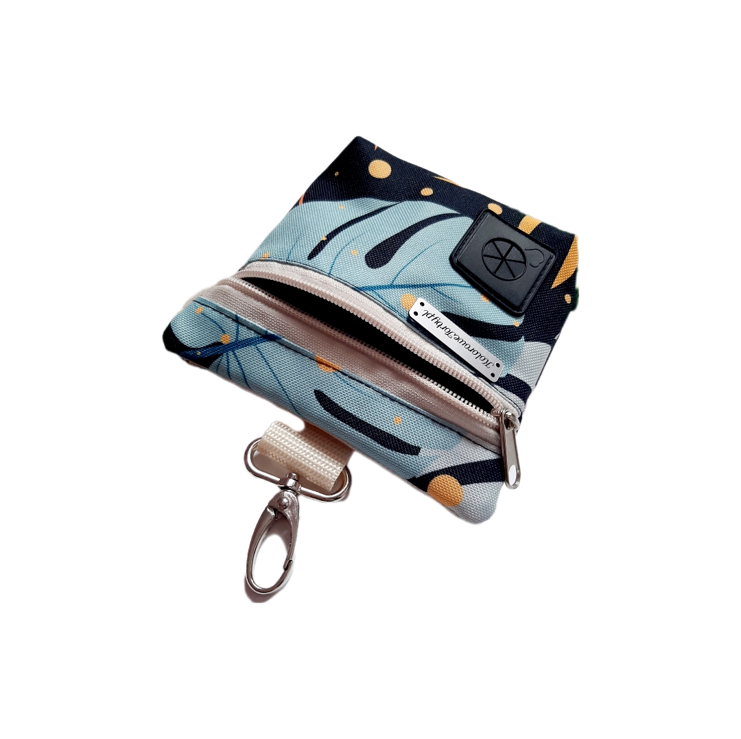TURKUSOWE MONSTERY Saszetka 2w1. Praktyczna i funkcjonalna torebka treningowa niezbędna podczas treningów, szkoleń, a także spacerów – nawet tych bardzo długich. Posiada dwie niezależne kieszenie: jedną na smaczki dla psa, a drugą na worki na odchody ze specjalnym otworkiem. Obie z zapięciem na zamki błyskawiczne.