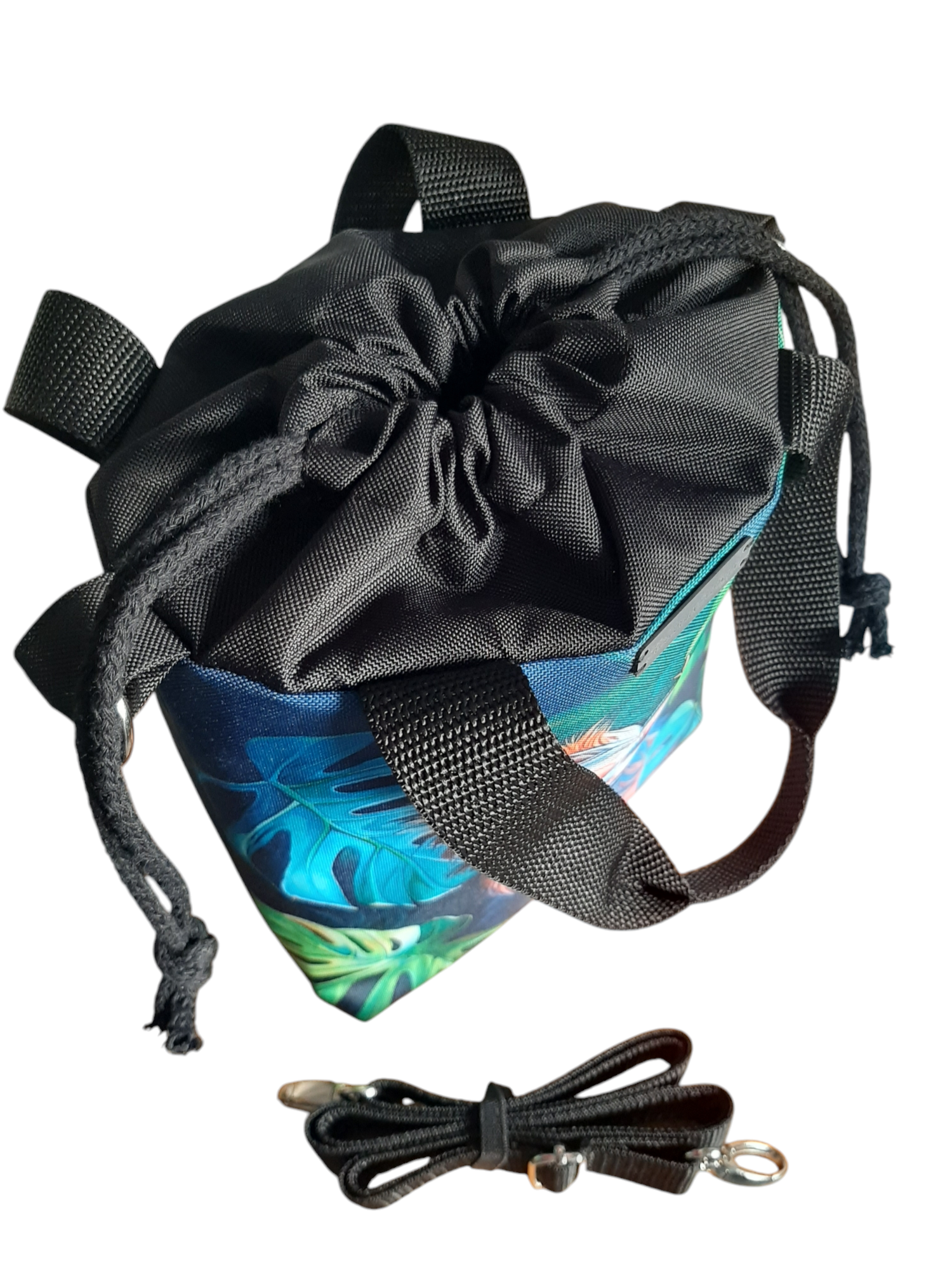 Zapięcie torebki to dwuwarstwowy, wodoodporny komin, ściągany czarnymi troczkami. Jest to niezwykle szybkie i funkcjonalne rozwiązanie.