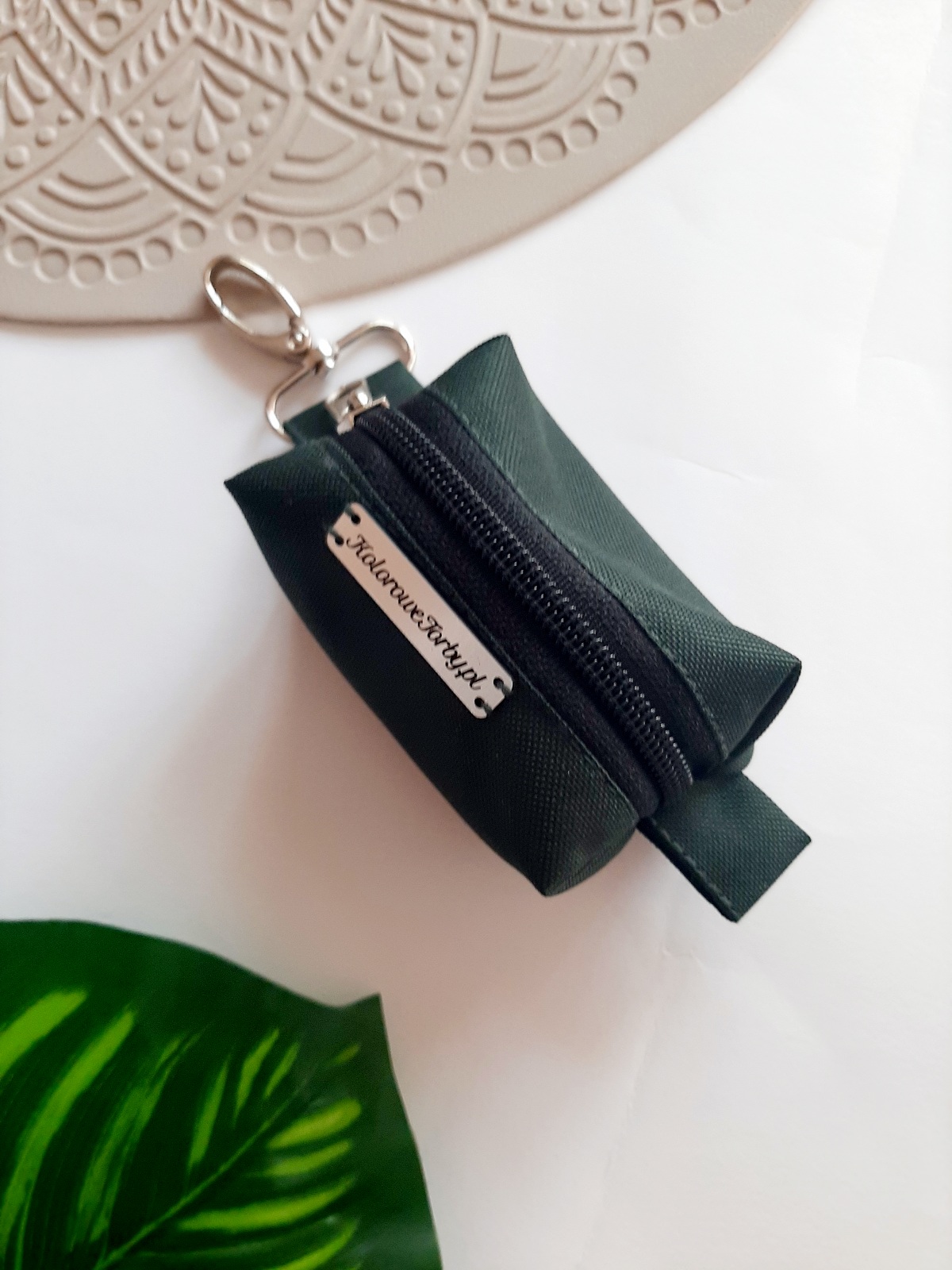 ZIELONY Etui na kupoworki. Niewielkich rozmiarów etui na woreczki na psie odchody o bardzo ciekawym fasonie. Wykonany z wytrzymałych, wodoodpornych tkanin, dzięki czemu nie straszna mu żadna zła pogoda. Wnętrze jest w kolorze czarnym (wykonane również z tkaniny wodoodpornej). Całość zapinana się na zamek błyskawiczny.